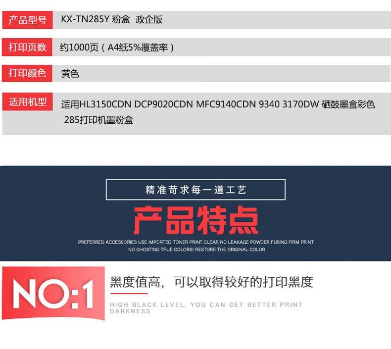 凱欣KX-TN285Y 適用HL3150CDN DCP9020CDN MFC9140CDN 9340 3170DW 硒鼓墨盒彩色 285打印機墨粉盒 全國統(tǒng)一價:268元